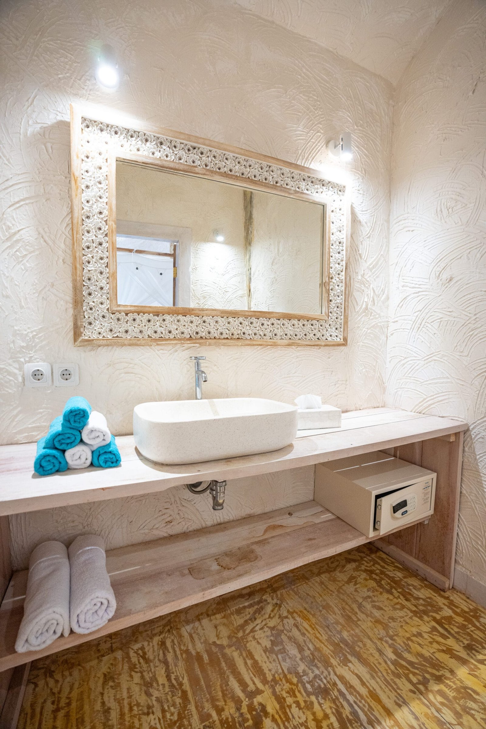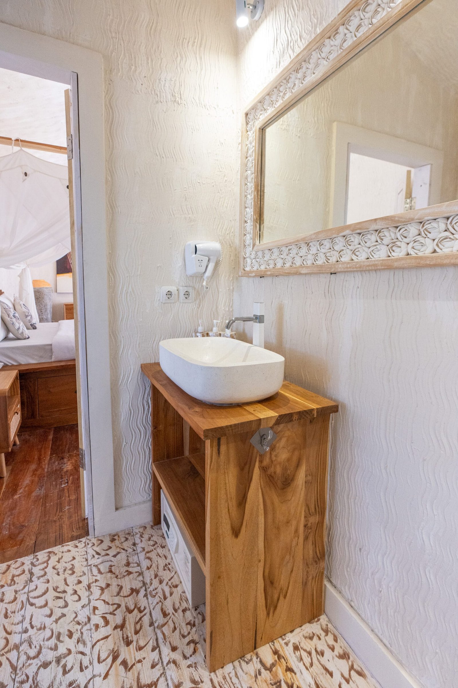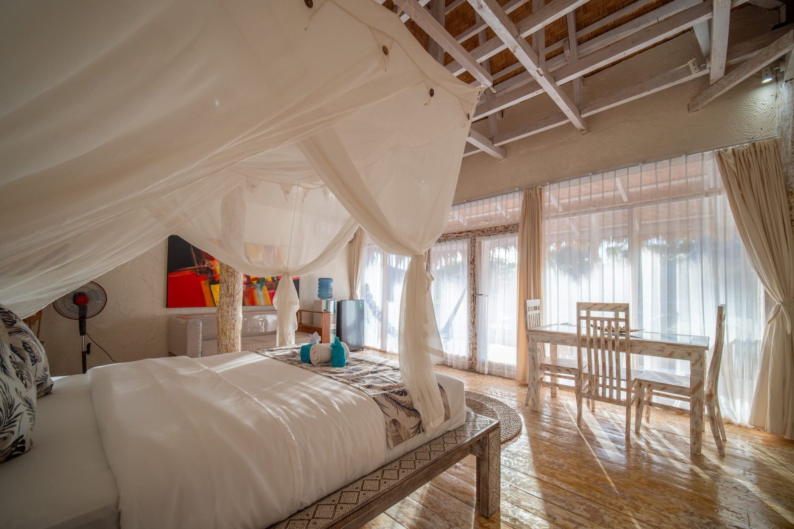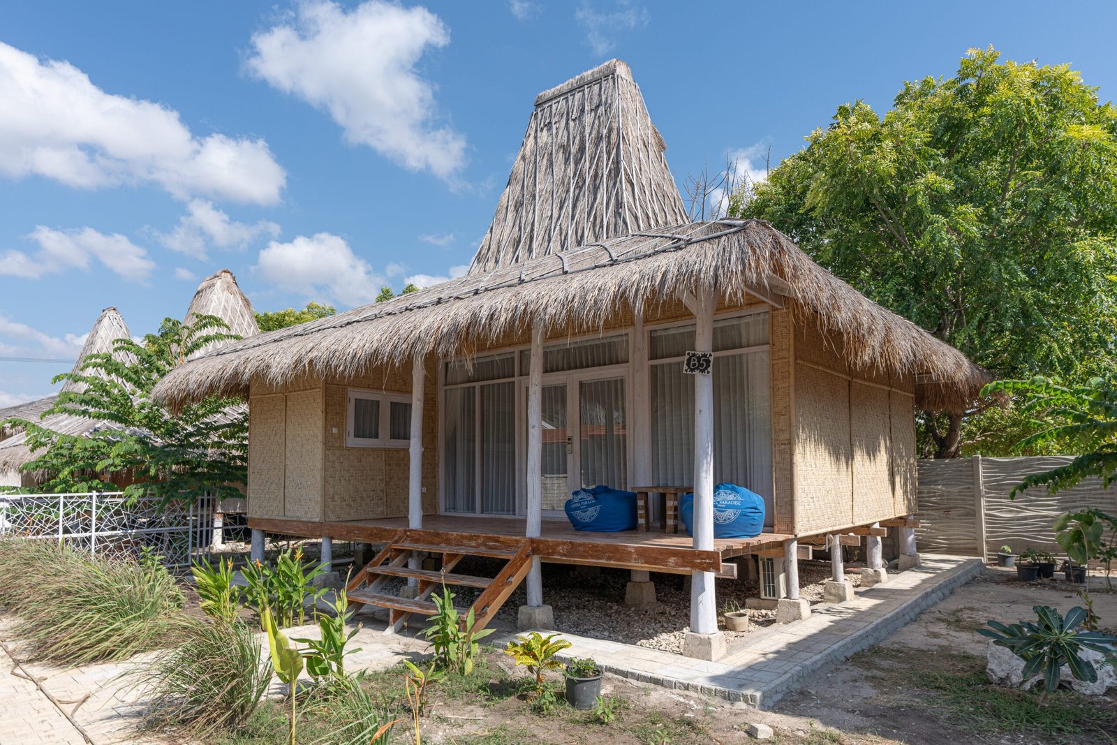 All bungalows feature AC, fan, a fridge, hot/cold water dispenser, smart TV, and hot water.